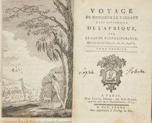 LEVAILLANT (François) - Voyage de monsieur Le Vaillant dans l'intérieur de l'Afrique, par le cap de Bonne-Espérance, Dans les Années 1780, 81, 82, 83, 84 & 85. Paris : Leroy, 1790. — 2 volumes in-8, 191 x 125 : frontispice, xxiv, 383 pp., 5...