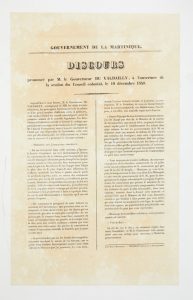 MENGIN DU VAL D'AILLY (Étienne-Henri) - Discours prononcé par M. le Gouverneur Du Valdailly, à l'ouverture de la session du Conseil colonial, le 10 décembre 1840. Port-Royal-Martinique : Thoubeau, [1840]. — Affiche, 410 x 250.