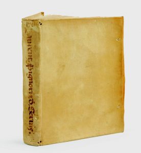 Vélin crème à recouvrement, dos lisse (reliure de l' époque).