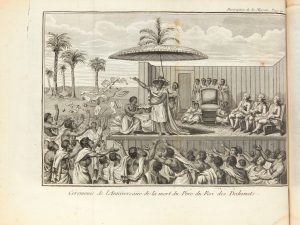 L'édition est illustrée de 9 planches, dont 1 plan, 7 cartes et une grande figure dépliante représentant la «Cérémonie de l'anniversaire de la mort du père du roi des Dahomets.»