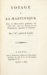 [ROMANET DU CAILLAUD (Joseph)] - Voyage à la Martinique. Vues et Observations politiques sur cette Isle, avec un Aperçu de ses Productions végétales et animales. Par J. R***, général de brigade. Paris : L. Pelletier, An XII-1804. — In-8,...