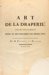 1765. LIBRO: (ARTES Y OFICIOS). MONCEAU, DUHAMEL DU: ART DE LA DRAPERIE, principalment pour ce qui regarde les draps fins. [Paris]: Imp. de H. L. Guerin & L. F. Delatour, 1765. Folio mayo. 1 h. + 150 p. + XV lám....