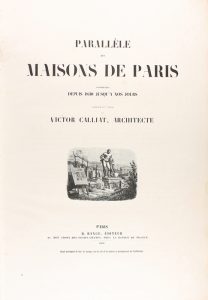1850. GRABADO: (ARQUITECTURA). CALLIAT, VICTOR: PARALLÈLE DES MAISONS DE PARIS CONSTRUITES DEPUIS 1830 JURQU´A NOS JOURS. Paris: Éd. B. Bance, 1850. Gran folio. 5 h. + 186 lám. Grabados dibujados por Calliat a...