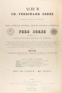 cromolitografiadas. Texto a doble columna, páginas limpias. Estados en el texto. Lám. numeradas con multitud de estructuras de hierro, sobretodo puentes y ensamblajes. Zorès ilustra con su álbum su novedosa arquitectura del hierro que se desarrolló en Europa durante la segunda mitad del s. XIX. Enc. en media tela, lomera semidesprendida, puntas y cantos rozados. Firma de anterior poseedor. FRBNF 31691521.