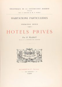 a dos columnas. Presentado en carpeta editorial con la lomera en piel, ligeramente rozada. Completa obra que contiene bellas litografías en color de numerosas construcciones hoteleras, de la mano de arquitectos de la talla de Bayard, Bardon, Duvert, Pascal, Marotte, Maillart, Pascal, Thévin, etc. corresponden a fachadas, plantas, secciones, detalles arquitectónicos como decoraciones de estancias interiores. FRBNF 31119980.