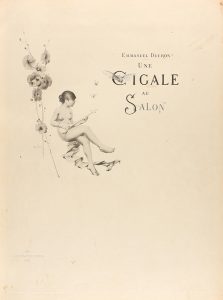 1885. LIBRO: (BIBLIOFILIA). DUCROS, EMMANUEL: UNE CIGALE AU SALON. Paris: Ed. Baschet, Ludovic, 1885. Fol. menor. Edición sin paginar. 25 h. Profus. ilustr. con dibujos y viñetas acompañando el texto. Enc. en plena...
