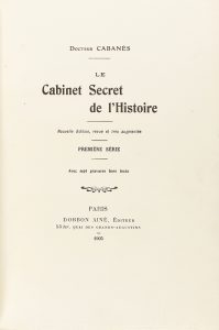1905. LIBRO: (BIBLIOFILIA-HISTORIA). CABANÈS,: LE CABINET SECRET DE L´HISTOIRE. Paris: Ed. Dorbon Ainé, 1905. 4 vol. en 4º. I: XV p. + 305 p. + 3 h. Ilustr. con 7 lám. II: 2 h. + 406 p. + 2 h. + 7 lám. III: 2 h. +...