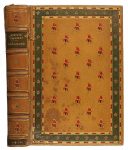 En plena piel con mosaico floral y en el lomo, nervios, hilos en los cantos, ruedas doradas en las cejas, guardas de seda, corte superior dorado. Pequeñas manchas en la esquina inferior izquierda con roces en los cantos del lomo. Exlibris de Gustavo Gili de después del bombardeo de Barcelona de 1938.