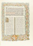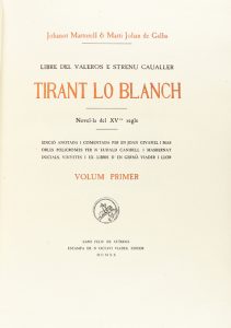 Guíxols: Estampa de n´Octavi Viader, 1920-21. 2 vol. en gran folio. I: 1 p. facsímil en negro de la edición de 1490, 1 p. color+ 177 fols. a dos tintas, 36 p. de índice. II: 1 facsímil de la edición de 1490 en negro, 1 p. color + 203 fol. a dos tintas + 10 p. de índice a dos tintas. 2 vol. enc. en pergamino decorado, corte superior dorado. Edición numerada de 460 ejemplares sobre papel de hilo con marca de aguas del impresor en cada pliego. Presentados los dos en una petaca de cartoné muy rozada.