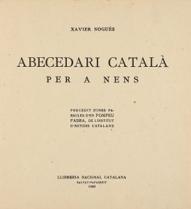 1920. LIBRO: (TIPOGRAFÍA-INFANTIL). NOGUES, XAVIER: ABECEDARI CATALÀ PER A NENS. PRECEDIT D´UNES PARAULES D´EN POMPEU FABRA, DE L´INSTITUT D´ESTUDIS CATALANS. Barcelona: Libr. Nacional Catalana Salvat-Papasseit,...