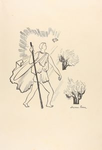 1938. LIBRO: (BIBLIOFILIA). SAGARRA JOSEP MARIA DE: CHORA. Barcelona: Ed. l´Espiga, 1938. Folio. 71 p. + 4 h. Ilustrado con dibujos de Joaquim Serra en el texto. Algún punto de óxido. Edición numerada de 25 ejemplares...