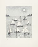 firma manuscrita de cada artista: Angel Planells, Jordi Curós, J. Roca-Sastre, Antoni Pitxot, Pagans Montsalvatge, Vayreda Canadell, Maria Girona, Francesc Todó, Albert Ràfols Casamada, Rafel Duran, G. Carbó Berthold, S. Koyama, Tharrats, Arranz-Bravo, Aguilar Moré, Danés Jordi, Narotzky, Cuixart, Marc Aleu y Peter Ek. Ejemplar en rama presentado en una caja de cartoné papel al agua, con la lomera de piel. Edición numerada de 100 ejemplares numerados con la serie completa de los aguafuertes en estado definitivo y sobre papel de hilo Guarro, de un total de 155.