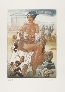2011. LIBRO: (BIBLIOFILIA). ARMIÑO, MAURO; PERELLON, CELEDONIO [aguafuertes]: LES MUSES. Pamplona: Liber Ed., 2011. Folio mayor. Aguafuertes a color. Ejemplar en rama presentado en un estuche de piel. Edición numerada...