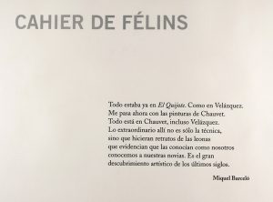 Jhon Berger. Presentación de Xavier Folch. 107 p., 1 h. Ilustr. con reproducciones de las primeras fotografías de las cuevas, descubiertas en 1994. Libro CAHIER DE FÉLINS contiene los 37 dibujos reproducidos en facsímil a partir de los originales de Barceló. Ambos enc. en tela edit. estampada. Acompaña la obra una lámina numerada. Lleva además, un texto de Barceló en gran folio en papel translúcido de gramaje alto. Edición numerada y firmada a lápiz por el autor de un total de 2998 ejemplares. Todo presentado en un estuche de madera de arce con un pirograbado del propio M. Barceló.