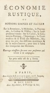1769. LIBRO: (CIENCIAS). ÉCONOMIE RUSTIQUE, OU NOTIONS SIMPLES ET FACILES. Paris: Lottin, 1769. 8º menor. XXIII p. + 560 p. Ilustr. con cabeceras, letras capitales, viñetas y culs-de-lamp. Enc. en plena piel, lomera con...