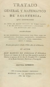 1791. LIBRO: (HOROLOGIA). ZERELLA Y YCOAGA, MANUEL DE: TRATADO GENERAL Y MATEMÁTICO DE RELOXERÍA QUE COMPRÉNDE EL MÓDO DE HACER RELOXES DE TODAS CLASES, Y EL DE SABERLOS COMPONER Y ARREGLAR POR DIFÍCILES QUE SÉAN....