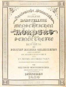 1828-1830. LIBRO: (ANATOMÍA HUMANA). OESTERREICHER, HEINRICH JOHANN: ANATOMISCHE STEINSTICHE. Erste, Zweite, Dritte Abtheilung. München: Verlage des Herausgebers, 1828-1830. Gran folio. Portada grabada + 1 h. + 10 lám....
