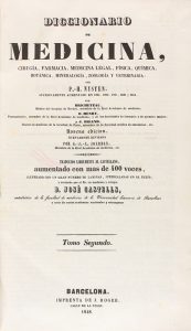 1848. LIBRO: (MEDICINA). NYSTEN:. DICCIONARIO DE MEDICINA, CIRUGIA, FARMACIA... Aumentado con más de 4.000 voces... y revisado por el Dr. José Castells. Barcelona: Imp. J. Roger, 1848. 2 vol. en 4º mayor. I: 4 h. + 625...