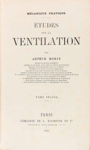 1863. (INGENIERÍA). MORIN, ARTHUR: ÉTUDES SUR LA VENTILATION. Paris: Libr. L. Hachette et Cie., 1863. 2 vol. 8º mayor. I: 2 h. + III + 610 p. II: 2 h. + 407 p. + XVI lám. plegadas. Ilustr. con estados y viñetas en el...