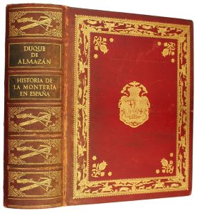 láminas, algunas de ellas en color, facsímiles, apéndices, índices que hacen de esta historia una obra fundamental, con 150 ilustraciones en texto. 13 cabeceras y 11 iniciales dibujadas. Ha perdido la portada original que ha sido sustituida por duplicado en facsímil. Restauración de alguna rasgadura con cinta adhesiva. Anotaciones y subrayados a lápiz y a color. Edición numerada de 505 ejemplares sobre papel de hilo. Enc. firmada por V. Arias en plena piel editorial, con escudo dorado, hierros en ambos planos, cantos y cejas, algo rozada. Lomo con doble tejuelo y cuajado de dorados alusivos al tema venatorio, algo abierta. Obra imprescindible en cualquier biblioteca cinegética de notable presencia.