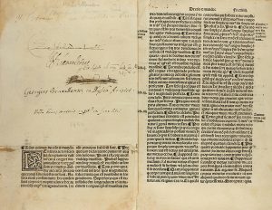 De fol. CXLIIII a fol. CLXXVIII (sign. s8- y8 y 2 fol.) y de fol. I a fol. CLXXVII (sign. A8- Y8, AA1, faltan los dos últimos). Texto a dos columnas y en tipografía gótica, con capitales xilografiadas y apostillas marginales. Con erratas en la foliación pero signatura completa, salvo las ya mencionadas. La primera foliación corresponde ´liber primus de celo et mundo´, que es el final de otra obra donde al final del libro quarto concluye ´secundus tractatus unum capitulum in quo agitur (...)´. La segunda foliación va seguida y es la obra indicada en el título y de la que faltan dos fol. al final. Lleva antiguas anotaciones manuscritas en los márgenes y al principio de la obra. Algunas restauraciones de rasgaduras y algún folio consolidado. Sello húmedo de anterior poseedor. Enc. en peregamino moderno.
