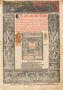 1525. LIBRO: (GÓTICO). DURANDI, GUILLELMUM: RATIONALE DIVINORUM OFFICIORUM QUIBUS CUMQUE SACERDOTIBUS... Lugduni [Lyon]: Imp. Antonii Blanchard, 1525. 4º menor. CLXVII fol. Texto a dos columnas en bonita tipografía...