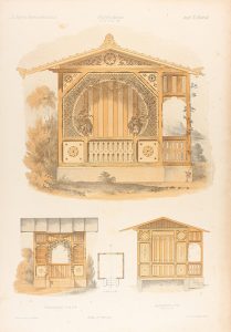 falta en la lomera. Bellas lám. litografiafidas a color de construcciones y detalles arquitectónicos en madera. Publicación completa en 6 entregas de 6 lám.