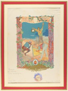 Poe en papel china. Ilustr. en color y dorados. Presentada en paspartú. Compuesta por G. Rochegrosse. Puntos de óxido en los márgenes.