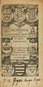 1629. LIBRO: (HISTORIA). HISPANIA SIVE DE REGIS HISPANIAE REGNIS ET OPIBUS COMMENTARIUS. Lugd. Batav. (Leiden): Officina Elzeviriana, 1629. 12º. 520 p. + 3 h. Portada con escudos grabados. Enc. en piel de época, tejuelo, con...