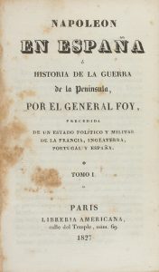1827. LIBRO: (HISTORIA). GENERAL FOY: NAPOLEON EN ESPAÑA Ó HISTORIA DE LA GUERRA DE LA PENINSULA. Paris: Libr. Americana, 1827. 8 vol. en 12º. I: 7 h. + 200 p. II: 1 h. + 271 p. III: 2 h. + 284 p. IV: 2 h. + 295 p. V: 2...
