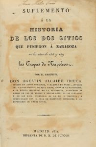1830. LIBRO: (HISTORIA ZARAGOZA). ALCAIDE IBIECA, AGUSTIN: HISTORIA DE LOS DOS SITIOS QUE PUSIERON A ZARAGOZA en los años de 1808 y 1809 las tropas de Napoleon. Madrid: Imp. de M. de Burgos, 1830-1831. 3 vols en 8º...