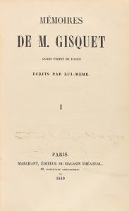 1840. LIBRO: (MEMORIAS-HISTORIA). MÉMOIRES DE M. GISQUET ANCIEN PRÉFET DE POLICE ÉCRITS PAR LUI-MÈME. Paris: Ed. Marchant, 1840. 4 vol. en 8º mayor. I: 2 h. + 552 p. II: 2 h. + 489 p. III: 2 h. + 523 p. IV: 2 h. + 479 p....