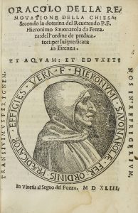 1543. LIBRO: (HUMANIDADES). SAVONAROLA DA FERRARA, HIERONIMO: ORACOLO DELLA RENOVATIONE DELLA CHIESA SECONDO LA DOCTRINA DEL REVERENDO... Vinetia: Segno del Pozzo, 1543. 8º menor. 4 h. + 163 fol. Portada con una efigie...