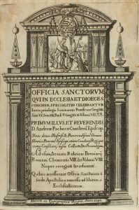 1649. LIBRO: (RELIGIÓN). PACHECO, ANDREAE: OFFICIA SANCTORUM QUI IN ECCLESIA ET DIOECES CONCHEN, SPECIALITER CELEBRANTUR... Matriti: Typ. Regia, 1649. 8º mayor. Frontis con calcografía arquitectónica por Iuan de Noort...