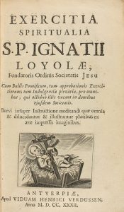 1732. LIBRO: (RELIGIÓN-JESUITAS). LOYOLAE, IGNATII S. P.: EXERCITIA SPIRITUALIA S. P. IGNATII LOYOLAE, Fundatoris Ordinis Societatis Jesu... Antuerpiae: apud Viduam Henrici Verdussen, 1732. 8º. Retrato calcográfico +...