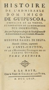 1749-1764. LIBRO: (RELIGIÓN-JESUITAS). RASIEL DE SELVA, HERCULE: HISTOIRE DE L´ADMIRABLE DOM INIGO DE GUIPUSCOA, CHEVALIER DE LA VIERGE, ET FONDATEUR DE LA MONARCHIE DES IÑIGHISTES. A la Haye: chez la Veue de Charles le...