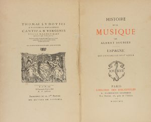 1899-1900. LIBRO: (MÚSICA). HISTOIRE DE LA MUSIQUE. ESPAGNE. Paris: Libr. des Bibliophiles, 1899-1900. 2 tomos en 1 vol. 8º menor. 2 h. + 96 p. + 3 h. + 118 p. + 1 h. Retratos en el texto. Hojas limpias y anchos márgenes. Enc....