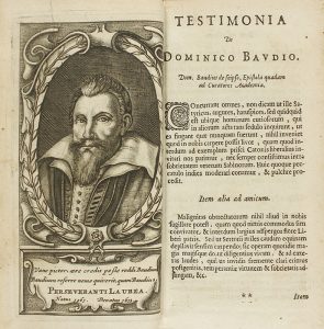 1639. LIBRO: (LITERATURA-EPISTOLAR). BAUDI, DOMINICI: EPISTOLARUM CENTURIAE TRES; LACUNIS ALIQUOT SUPPLETIS. ACCEDUNT EJUSDEM ORATIONES. Amstelodami: Typis Ioannis Ianssonii, 1636. 12º. 12 h. + 672 p. Portada con grabado...