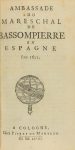 1668. LIBRO: (LITERATURA). AMBASSADE DU MARESCHAL DE BASSOMPIERRE EN ESPAGNE L´AN 1621. Cologne: chez Pierre deu Marteau, 1668. 12º. 1 h. + 316 p. Enc. en media piel, puntas, nervios, florones. [Más:] AMBASSADE DU MARESCHAL...