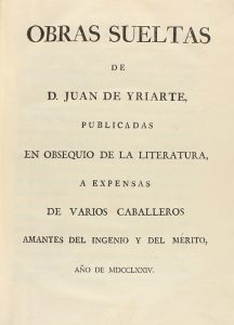 1774. LIBRO: (LITERATURA). YRIARTE, JUAN DE: OBRAS SUELTS DE... PUBLICADAS EN OBSEQUIO DE LA LITERATURA. Madrid: imp. Francisco Manuel de Mena (al final del vol. II), 1774. 2 vol. en 4º menor. I: 26 h. + 504 p. y un...