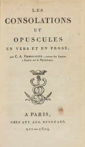 1804. LIBRO: (LITERATURE). DEMOUSTIER, C. A.: LES CONSOLATIONS ET OPUSCLES EN VERS ET EN PROSE. 5 vol. Paris: Chez ant. Aug. Renouard, 1804. 5 vol. en 12º. Obra completa. I: 2 h. + 150 p. + 4 p. II: 2 h. + 151 p. a la 311...