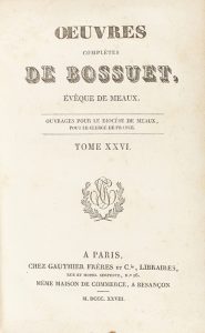 1828-1830. LIBRO: (LITERATURA). BOSSUET: OEUVRES COMPLÉTES. Paris: LIbr. Gauthier Frères, 1828. 48 vol. en 8º mayor. [Sigue:] HISTOIRE DE BOSSUET. Id. 4 vol. en 8º mayor. 300 p. aprox. cada uno. 52 vol. enc....