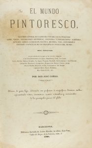 1868. LIBRO: (LITERATURA). COMAS, JOSÉ: EL MUNDO PINTORESCO. Resumen general de cuanto mas notable se ha publicado. Barcelona: Ed. Juan Pons, 1868. 4º. 499 p. + 4 h. Ilustr. con lám. fuera del texto. Anotaciones a...