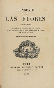 1869. LIBRO: (LITERATURA). LENGUAJE DE LAS FLORES, CONTENIENDO EL SIMBOLO DE LAS FLORES, SU HISTORIA, CULTIVO, Y MODO DE ESCRIBIR Y HABLAR POR MEDIO DE ELLAS. París: Libr. de Rosa y Bouret, 1869. 12º. 202 p. Ilustr. con 12 ...