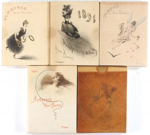 1890-1894. LIBRO: (LITERATURA). MONTORGUEIL, GEORGES. LOTE CONJUNTO DE 5 ALMANACHS DE HENRI BOUTET POUR 1890-1894. Paris: S. Imp. 12º. 1890-1894. 100 p. aprox. c/u. Profus. ilustr. con viñetas y lám. algunas de ellas...