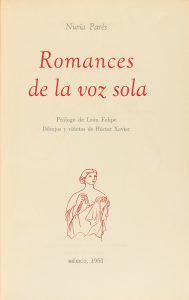 1951. LIBRO: (LITERATURA). PARÉS, NURIA,. ROMANCES DE LA VOZ SOLA. Prólogo de León Felipe. México: Gráf. Panamericana, 1951. 4º menor. Edición sin paginar de unas 70 h. Ilustr. con dibujos y viñetas Héctor Xavier,...