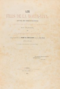 1879. LIBRO: (VALENCIA-PRIMERA EDICIÓN). LLOMBART, CONSTANTÍ: LOS FILLS DE LA MORTA-VIVA. APUNTS-BIO-BIBLIOGRÀFICHS PERA LA HISTORIA DEL RENAIXIMENT LLITERARI LLEMOSÍ EN VALENCIA. Valencia: Imp. Emili Pasqual, 1879....