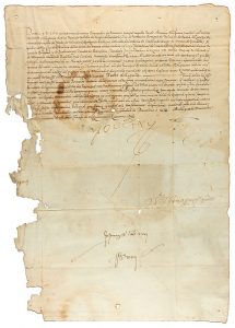 Barcelona en noviembre de 1542. Restos del sello de lacre. Falta de papel en el margen izquierdo del documento, afectando el inicio de las tres últmas líneas.