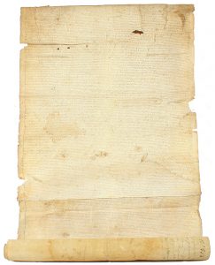 1562. MANUSCRITO: (PERGAMINO). PERGAMINO RELACIONADO CON EL PRIORATO BENEDICTINO DE SAN ANTONI DE CALONGE. Tres grandes piezas de pergamino cosidas que forman un rollo de 193 x 73 cm. Muy interesante porque contiene la...