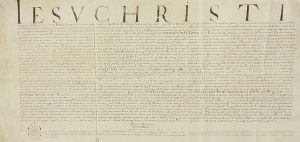 1581. MANUSCRITO: (NOMBRAMIENTO ECLESIÁSTICO). OTORGADO A IOANNES DE LA TORRE, DE ANTEQUERA, POR IACOBUS FERRUSSIUS. Manuscrito sobre pergamino 30 x 68 cm. Documento firmado por Jacobus Ferrusius, uno de los cardenales que...
